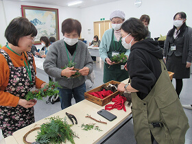 12月5日(金)、JA松任第1期「あさ姫カレッジ」第5回講座“クリスマスを素敵に彩る☆ハーフリースアレンジメント”作りを開催しました。