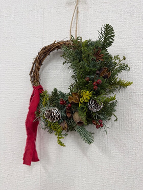 “クリスマスを素敵に彩る☆ハーフリースアレンジメント”作りを開催しました